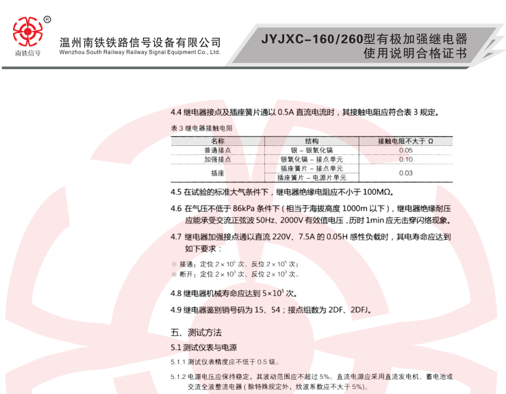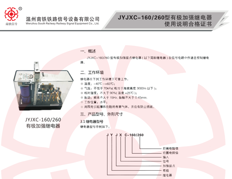 JYJXC-160/260有極加強(qiáng)繼電器在信號(hào)電路中用于單線自動(dòng)閉塞改變運(yùn)行方向電路中的方向繼電器。