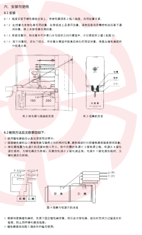 繼電器插座用螺栓安裝在組合架(柜)上,將繼電器水平插入插座,并用掛簧卡緊。